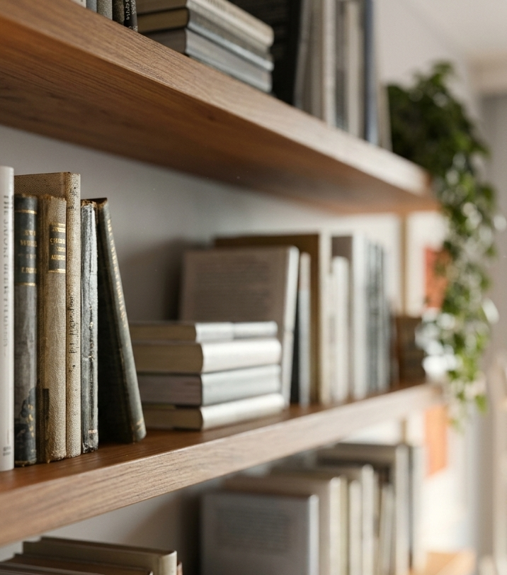 Karolina pracuje jako redaktorka i od początku było jasne, że książki będą w tym projekcie ważne. Nie jako dekoracja ustawiona pod zdjęcia, ale jako coś, co naprawdę wypełnia codzienność.
